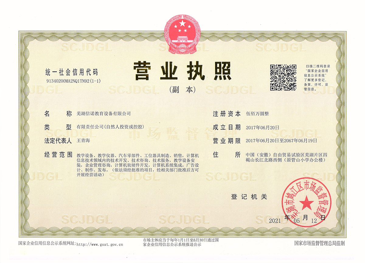 版權(quán)所有 2018 蕪湖信諾教育設(shè)備有限公司 COPYRIGHT 免責(zé)聲明 皖I(lǐng)CP備18002869號-1 營業(yè)執(zhí)照